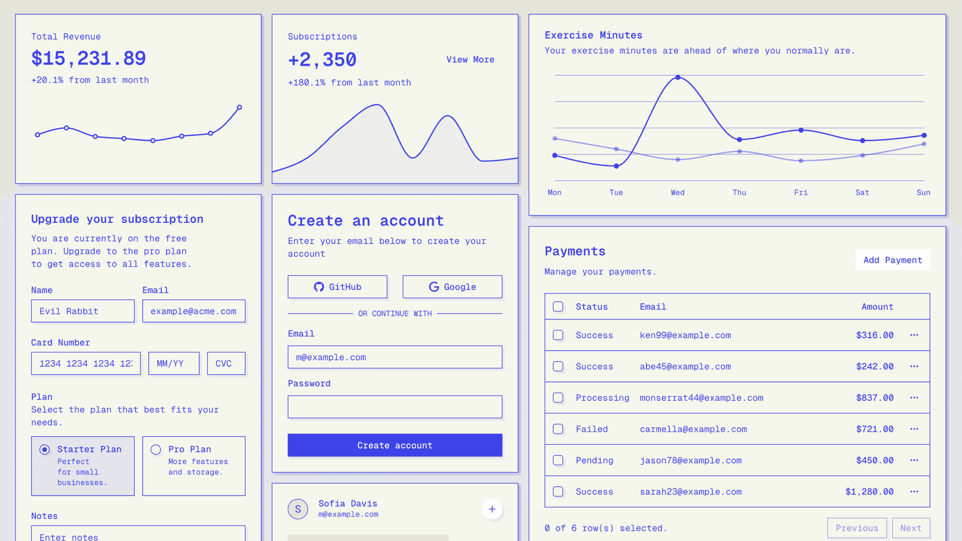 Launch faster with ready-made components and full-page designs.